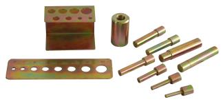 В комплекте пуансоны:3/8”, 7/16”, 9/16”, 5/8”, 3/4”, 13/16”, 15/16”, 1?1/8”,рама для пуансонов, пресс форма.Крепление к штоку силового цилиндра пресса 25мм, посадочный размер пуансонов 25мм.