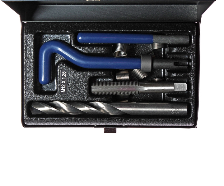 В комплекте 14 предметов В комплект входят: сверло, метчик, установочный инструмент, инструмент для обламывания хвостовика, резьбовые вставки Размеры: М12х1.25 Длина: 16.3 мм. Количество резьбовых вставок: 10 шт. Упаковка: прочный пластиковый кейс. Габаритные размеры: 165/110/35 мм. (Д/Ш/В) Вес: 665 гр.