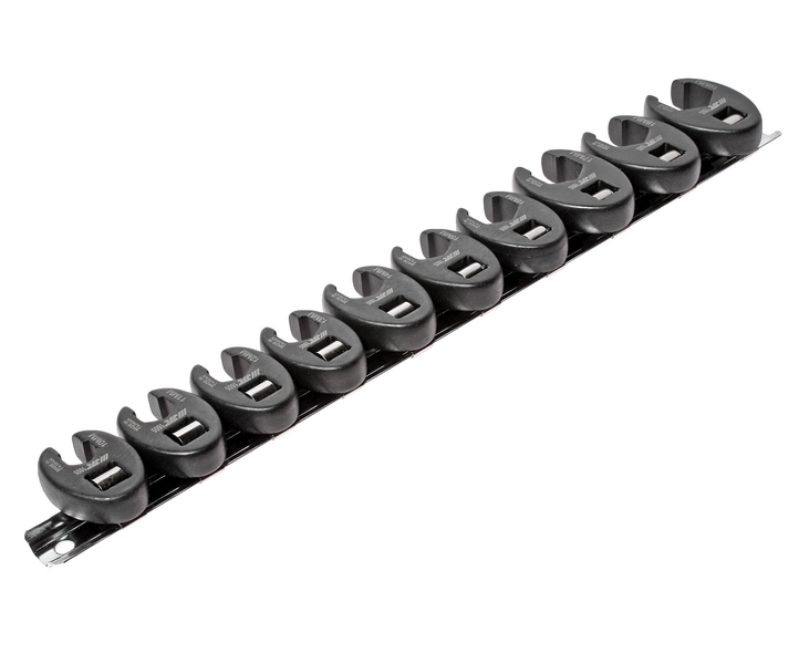 Предназначены для откручивания/закручивания накидных гаек различных гидро- и пневматических систем автомобиля. Инструменты изготовлены из закаленной хром-ванадиевой стали, за счет чего обладает повышенной прочностью и износостойкостью. Посадочный квадрат: 3/8" Размеры в комплекте (мм.): 10, 11, 12, 13, 14, 15, 16, 17, 18, 19. Общее количество ключей: 13. Количество в оптовой упаковке: 10 шт. Габаритные размеры: 410/110/25 мм. (Д/Ш/В) Вес: 736 гр.
