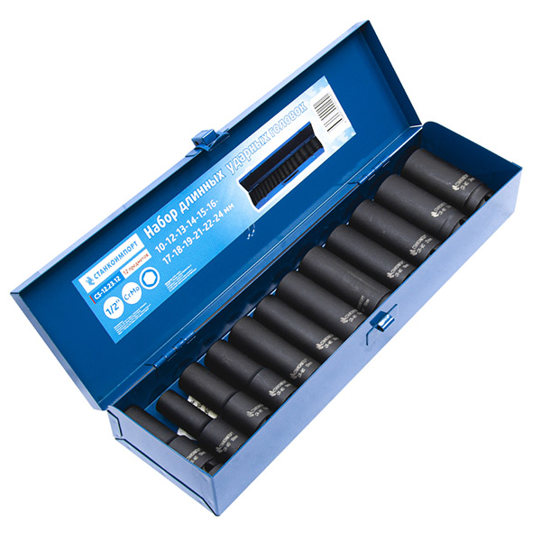 Набор длинных ударных головок 1/2 Станкоимпорт 12пр (10-24мм) в метал. кейсе CS-12.23.12.
