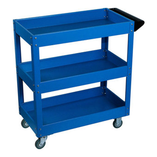 Тележка с тремя открытыми полками, синяя GARWIN 001060B предназначена для хранения инструментов в гаражах, автосервисах и автомастерских.