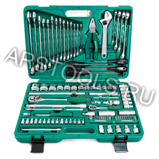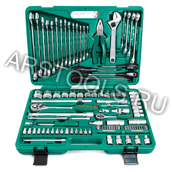 Набор инструментов JONNESWAY S04H624101S 047701 состоит из 101 предмета в чемодане. Посадочные квадраты инструментов в наборе - 1/2" и 1/4".