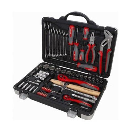 В комплект входят современные эргономичные 72-зубые трещотки с полипропиленовым покрытием. Головки и комбинированные ключи изготовлены из хром-ванадиевой стали и хромированы, биты, биты-вставки и отвёртки — из стали S2.