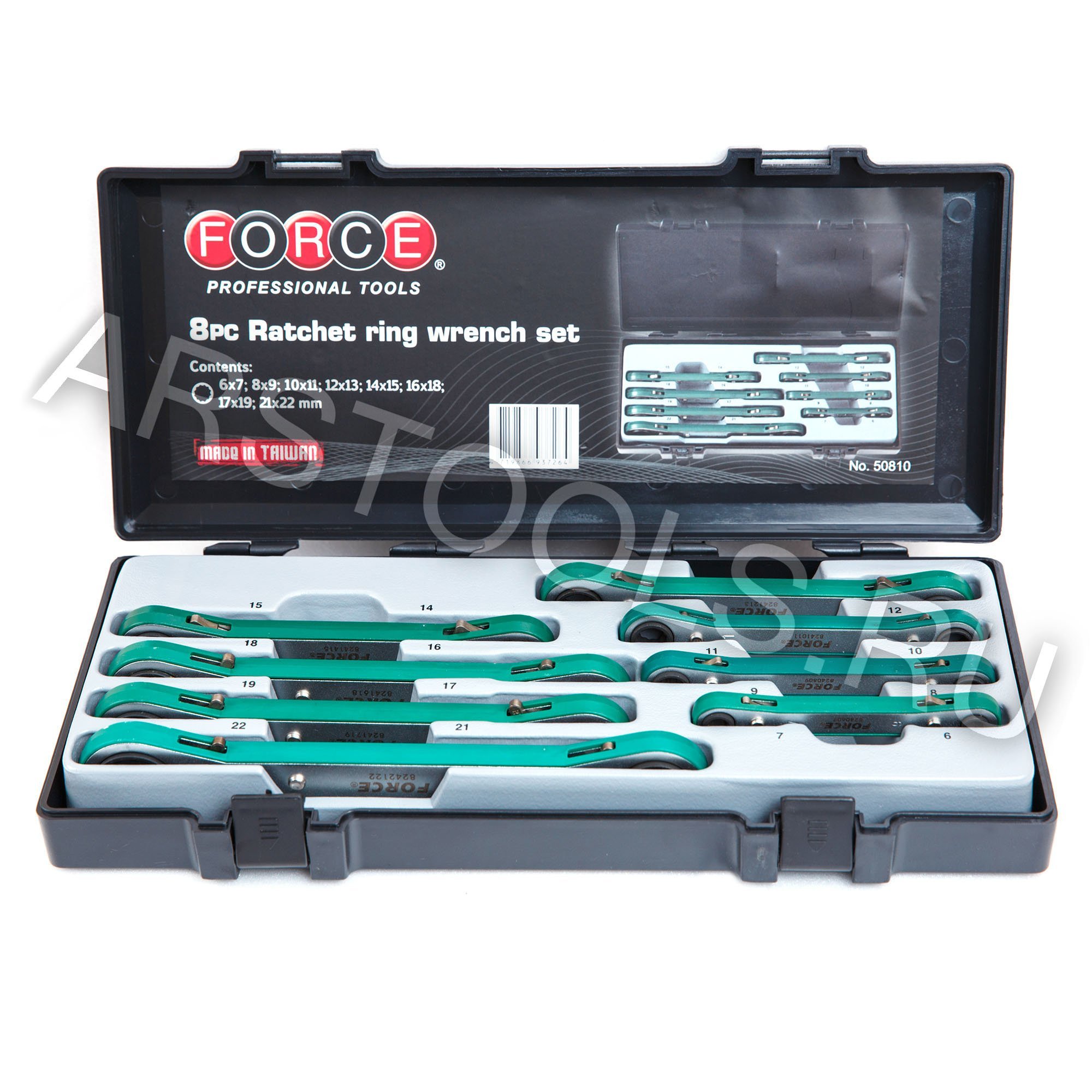Force Набор ключей накидных 8пр.с трещоткой прямых (№50810)