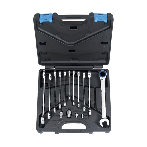 Набор ключей трещоточных комбинированных LICOTA ARW-11MK08 + 4 переходника состоит из 16 предметов в пластиковом кейсе.