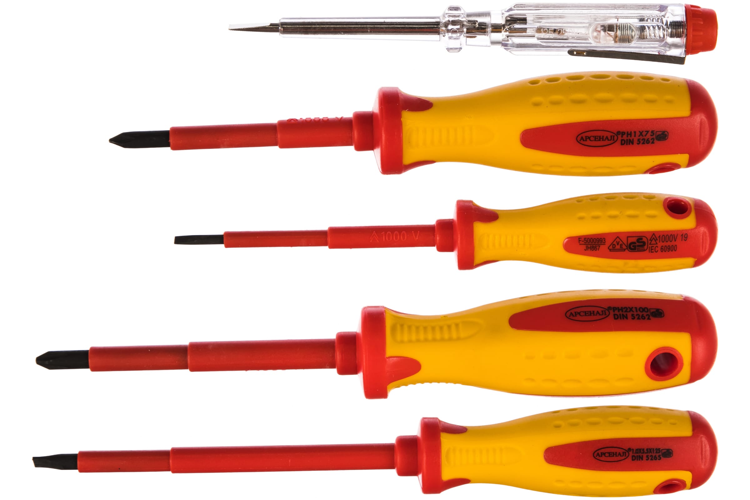 Набор диэлектрических отверток ARSENAL НОЭ-5 1042070 из пяти предметов.