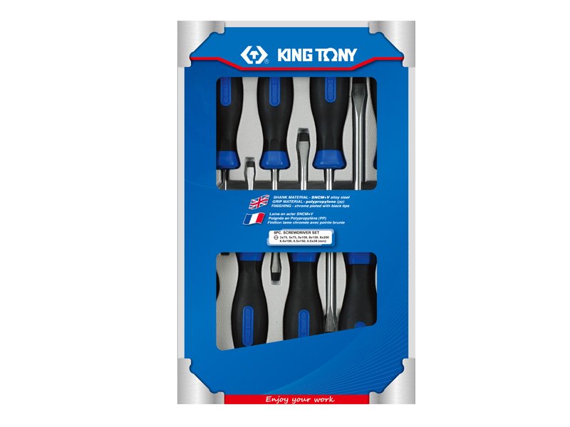Набор стандартных шлицевых отверток KING TONY 30118MR состоит из 8 предметов.