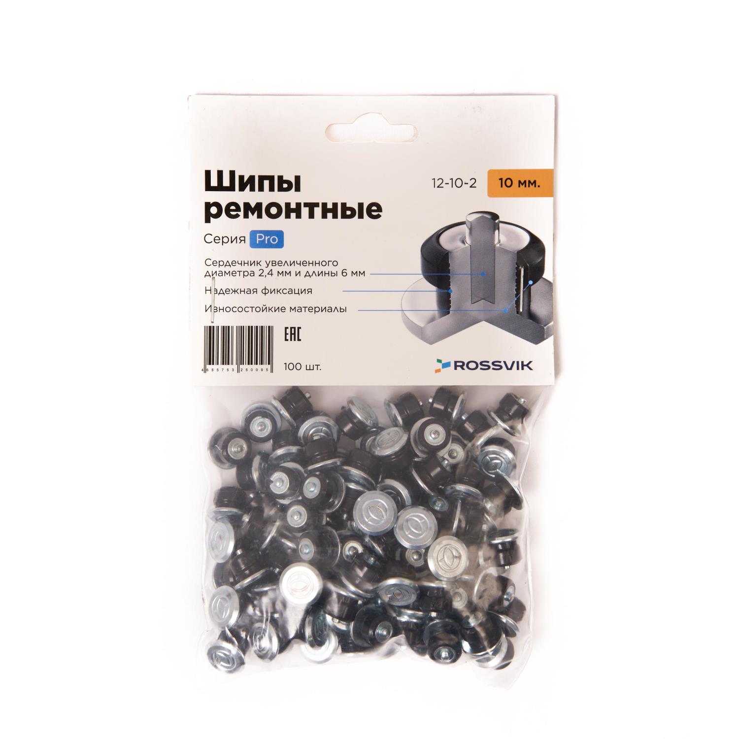 Купить шип ремонтный ROSSVIK 12-10-2 серия PRO (пакет 100шт) в Москве с доставкой. Официальный дилер. Низкие цены, гарантия. Счет для юридических лиц, оплата картой. Артикул 12-10-2 PRO/100. Производитель Rossvik. Профессиональный интернет магазин для сервисных центров. Работаем с 1996 года