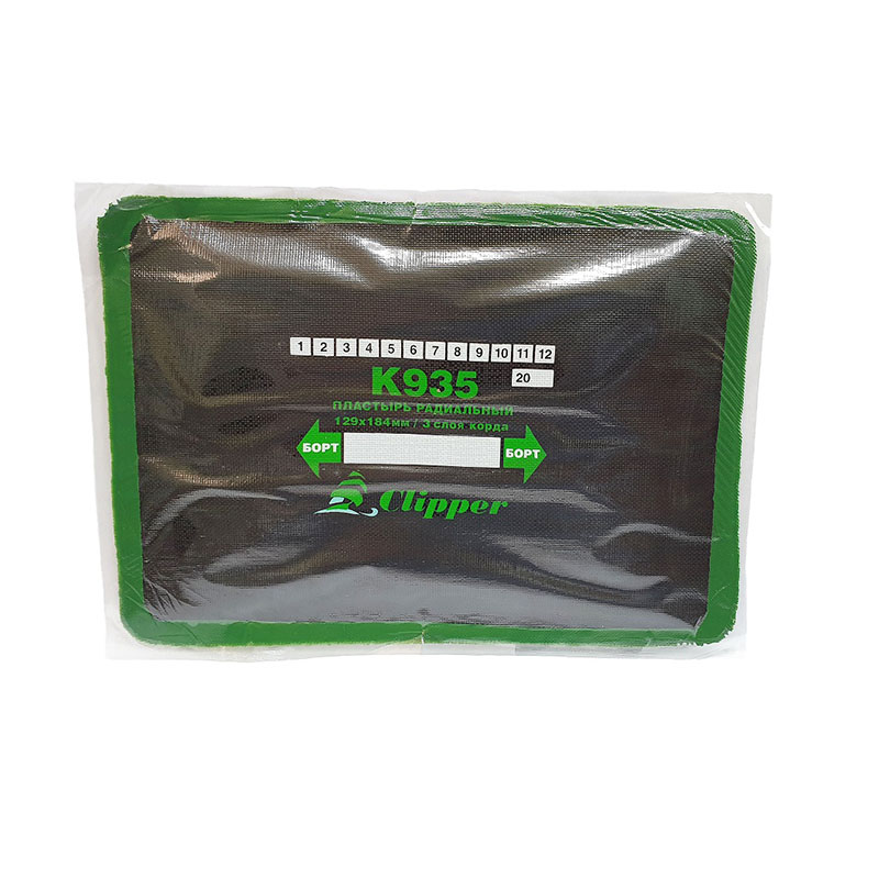 Купить шиномонтажные материалы: пластырь радиальный Clipper К935 ( 3 слоя корда) 129*184мм в Москве с доставкой. Гарантия низких цен. Официальный дилер. Работаем с физическими и юридическими лицами. Артикул К935. Производитель Clipper. Оборудование для автосервисов, инструменты и расходные материалы. Мы работаем с 1996 года