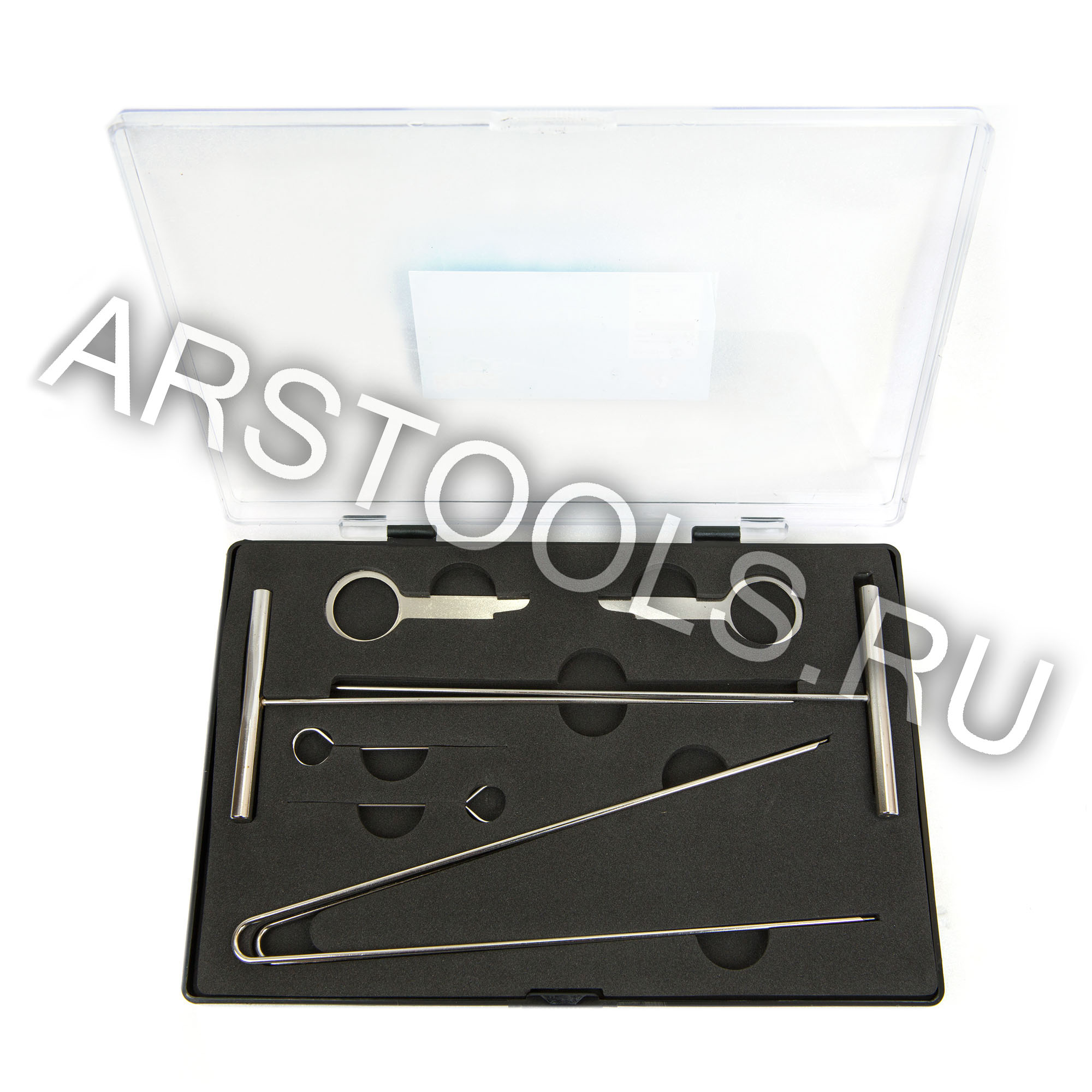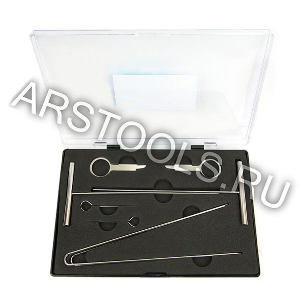 Набор включает в себя съемник замка зажигания, съемник радио панели и набор для снятия панели приборов.