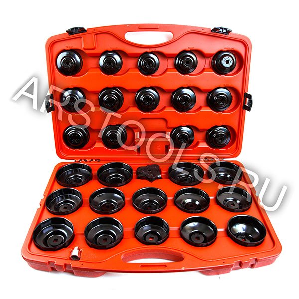 Набор съемников масляных фильтров в форме чашки (крышки) FORCE 61917. Набор состоит из 30 предметов в удобном пластиковом чемодане. Размеры съемников: 65 - 108 мм.
